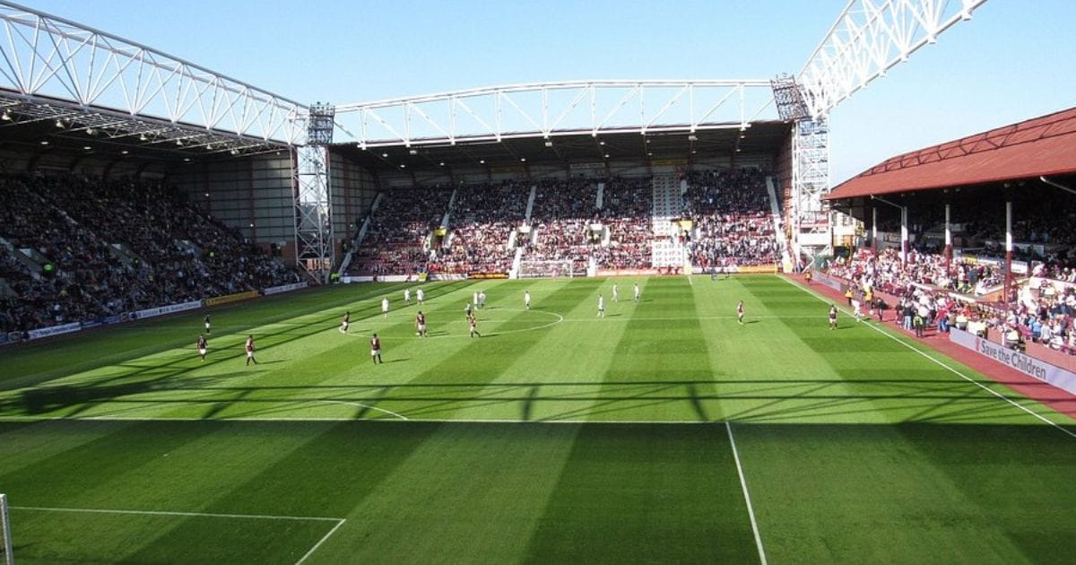 Tynecastle Park in Edinburgh, Scotland on a (very) rare sunny day