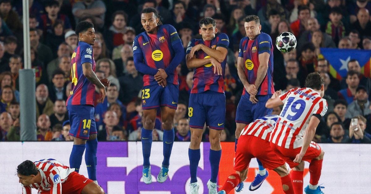 Barcelona 0-2 Atlético Madrid — A stunning Julián Álvarez free kick (pictured above) and a cool Alexander Sørloth volley against ten-man Barca sees Atlético head to the second leg with a commanding advantage.